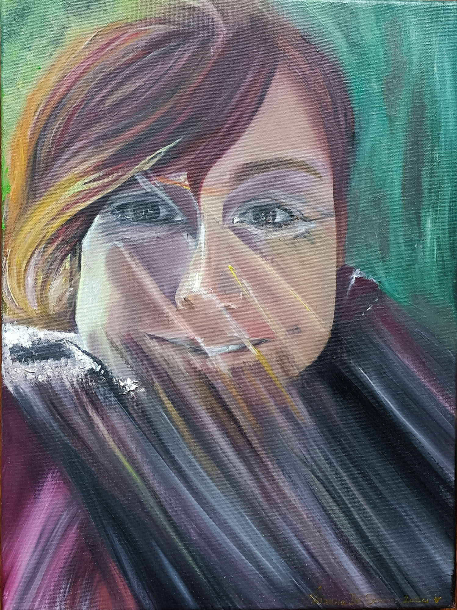 In Katerina's expression, there is an undeniable sense of happiness and vitality, a testament to her unwavering inner strength and resilience. Despite the shadows of adversity she has faced, she radiates with an infectious zest for life, embodying the transformative power of hope and the healing embrace of art.